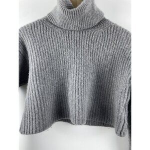 H&M | Cashmere Wool Blend Ribbed Thick Crop Turtleneck Grey Sweater Medium