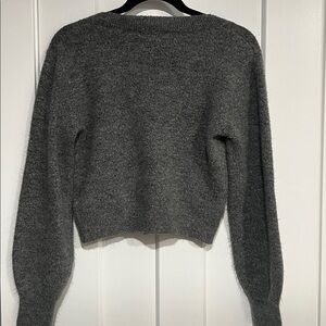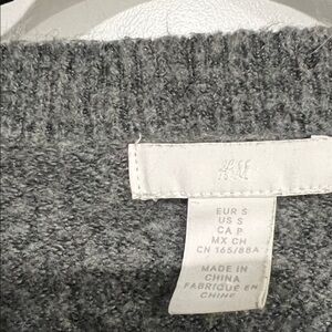 Chic charcoal cardigan with a V-neck. Features stylish button-up front. Perfect for layering.