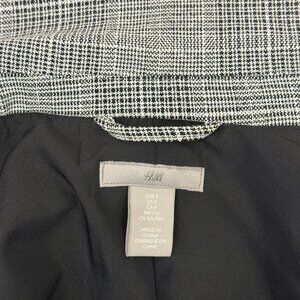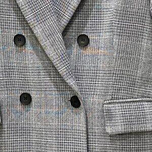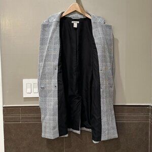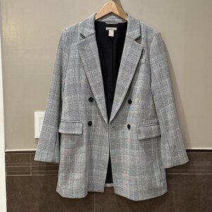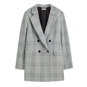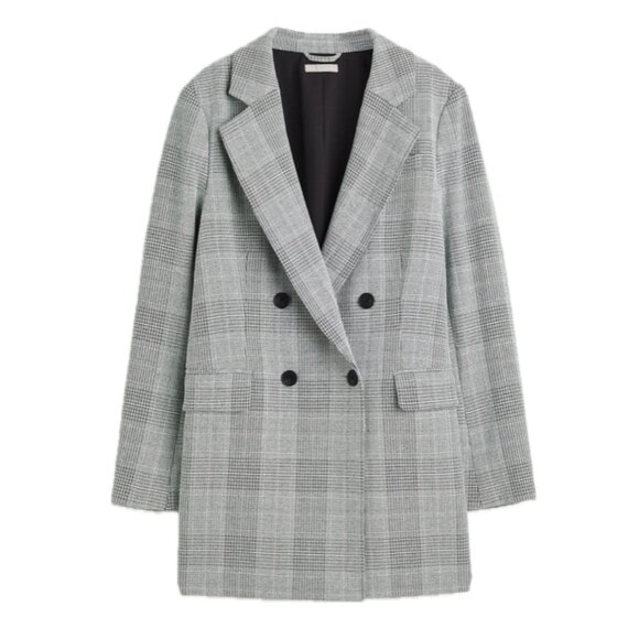 H&M Checked Pattern Double-Breasted Midi-Length Blazer Jacket (Grey/Black/White)