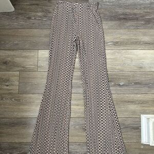 Stylish checkered flare pants. Comfortable fit. Perfect for any occasion.