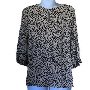 H&M Cheetah Print Top Keyhole Back 3/4 Bell Sleeves Beige Black Brown EUC Sz 12