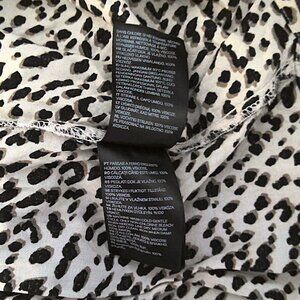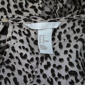 H&M cheetah print top, size 12, pullover with keyhole back & single button closure, 3/4 bell sleeves, gently rounded hem, some stretch, 100% viscose, flawless condition, like new including extra button sewn on interior fabric tag!