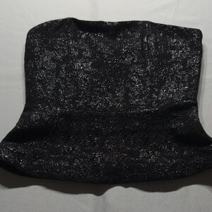 This chic black blouse is perfect for a night out, featuring a sleek strapless neckline and a sophisticated sleeveless design. Its elegant silhouette makes it a standout choice for cocktail events.
