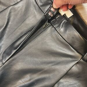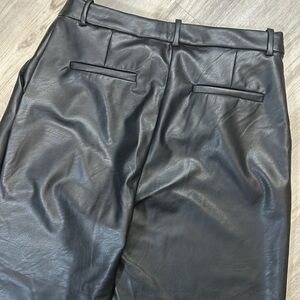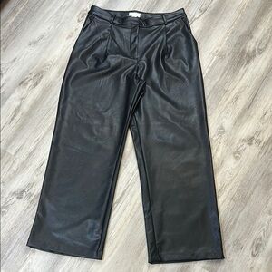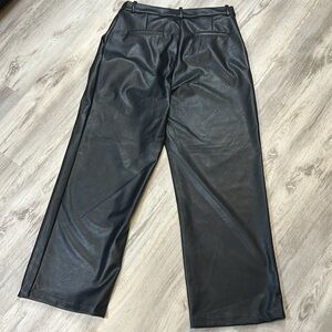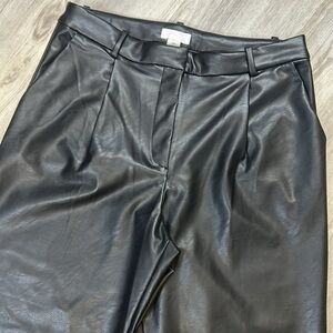 H&M Chic Black Vegan Leather High Rise Pleated Front Wide Leg Trouser Pants / 14