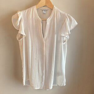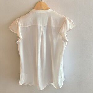 H&M chiffon blouse pleated flutter sleeve top tan beige neutral chic women’s size 2 workwear office casual minimalist capsule wardrobe soft girl aesthetic Kate Middleton inspired Gossip Girl Blair Waldorf old money aesthetic elegant lightweight