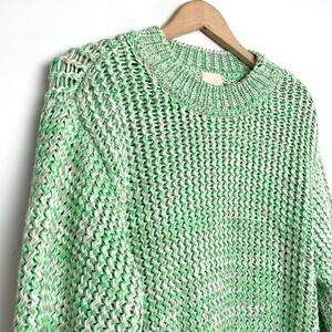 H&M Chunky Open Weave Green Chunky Crochet Knit Oversized Coastal Sweater L