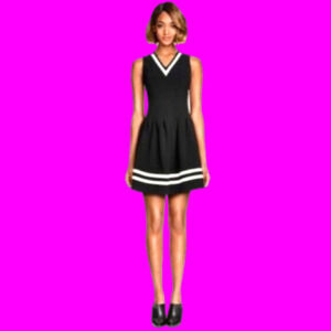 This awesome H&M black-and-white dress is a timeless classic. Size 8. Ninety-three percent polyester, 7% elastene material. V-neck, form-fitting with flare. In like new condition.