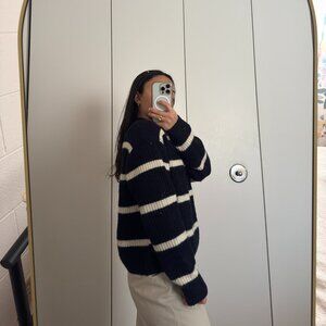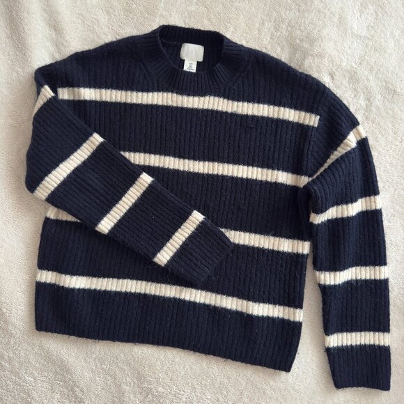 Color: Deep Navy Blue and Cream/Ecru Wide Stripes