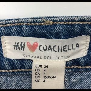 Boho H&M Coachella Distressed, high waist, 5 pocket jean microshorts with pink, orange, and green embroidered trim on sides. Cute, flattering, all cotton shorts perfect for summer festival season.