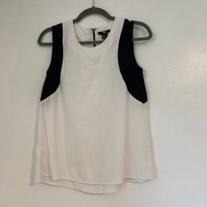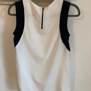 H&M black and white top. Zipper down the back 17 inches from armpit to armpit 23 inches from top of shoulder to hem 73% Viscose 27% Polyester