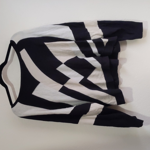 Cute diagonal color-blocked scoop-necked sweater.