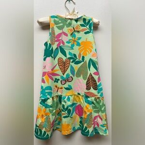 Bright dress with leaf and butterfly pattern. Perfect for casual outings.