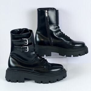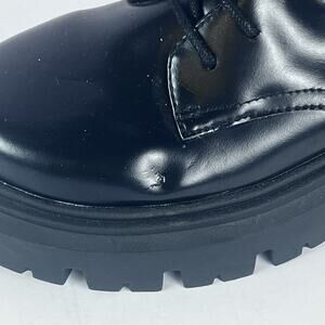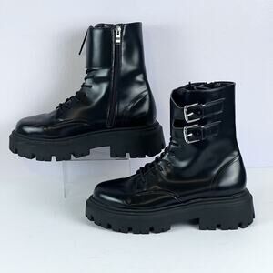 H&M Combat Boots Wmns Sz 8 Black Faux Leather Lace Up Platform Chunky Grunge Y2K