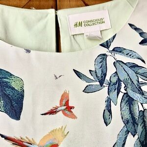 H&M Conscious Collect Green Tropical Short Sleeve Shift Dress Side Zip Med/Sz 8