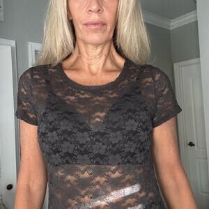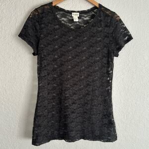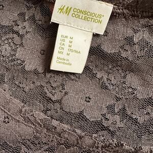 H&M Conscious Grey Sheer Top Short Sleeve Grunge Goth Fall Lace Indie Boho