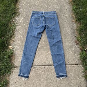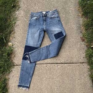 H&M Conscious Jeans Womens 8 Blue Skinny Patchwork Mid Rise Raw Hem Hippie Boho
