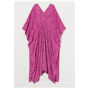 New with tags H&M Conscious Collection Kaftan Dress in a beautiful purple-ish pink magenta colored jacquard fabric. Women’s size small / medium.
