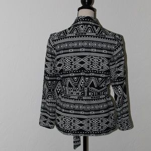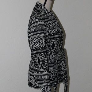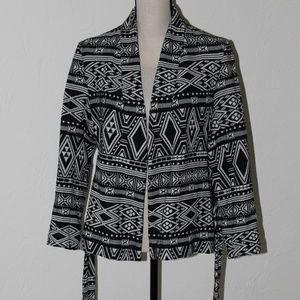 H&M Conscious Collection Black & White Print Knit Blazer. Size 4. With tags, never worn. Perfect condition. Unlined. 100% cotton. Machine wash, line dry. Cozy, soft feel. Sash tie at waist.
