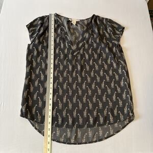 H&M Conscious Women's 6 Giraffe Print Pintuck V Neck Gray Blouse Business Office