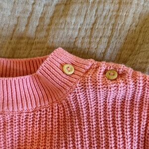 Chic coral knit sweater with button detail. Soft and comfortable for everyday wear. Cute as a big fit and then regular fit (fit my daughter for almost a year:) great condition.