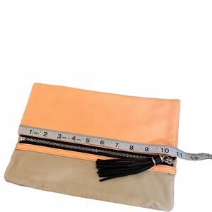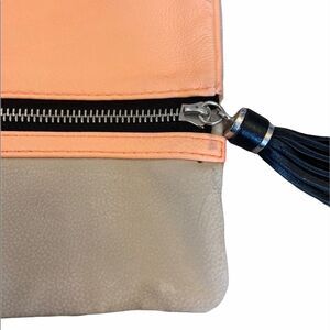 H&M Coral&Tan Zip Fold Over Faux Leather Clutch