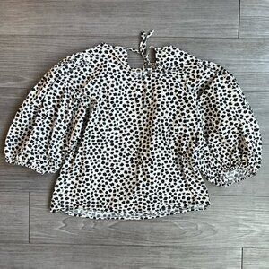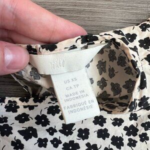 H&M Cotton Poplin Floral Puff Sleeve Crewneck Blouse Keyhole Back Size XS