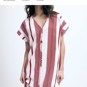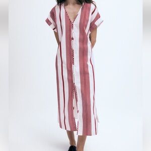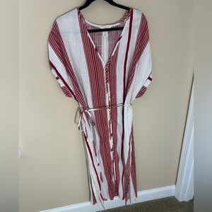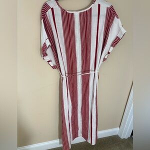 H&M Cotton Short Sleeve V-Neck Button-Front Tie Belt Midi Dress High Slits Sz L