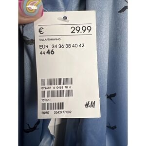 This H&M Crane Print Long Sleeve Satin Belted Midi Dress in size 16 is a rare and stylish addition to any wardrobe. The dusty blue color and bird-themed print add a unique touch to the dress, perfect for various occasions from casual to formal. The polyester material and satin fabric make it comfortable and elegant, while the long sleeves and button closure add a versatile element to the design. This dress is machine washable for easy care and is sure to make a statement in any season.