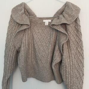 H&M Cream Knit Ruffle Shoulder Sweater Blogger Favorite M