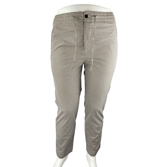 H&M Cream Plaid Checkered High Rise Drawstring Skinny Ankle Trousers Pants Sz L