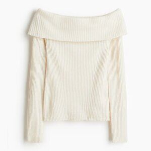 H&M Cream Rib-Knit Off-the-Shoulder Top, XS