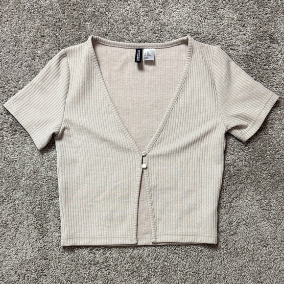 H&M Cream Ribbed Crop Top