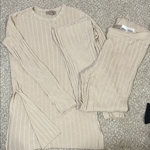 Neutral ribbed knit set. Includes top and boot cut pants. Soft and fitted on the body. Top is slightly on the longer side hitting around glutes