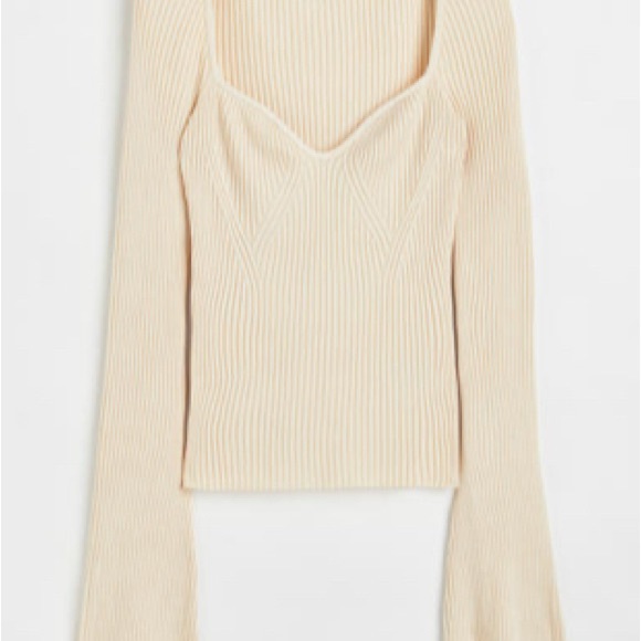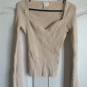 Stylish ribbed knit top. Square neckline. Long sleeves. Worn once