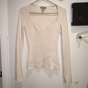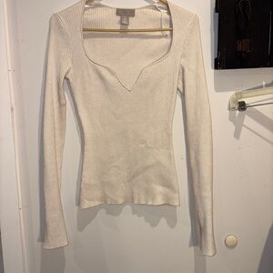 H&M Cream Ribbed Knit Top