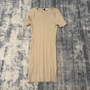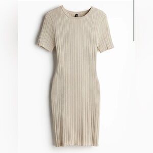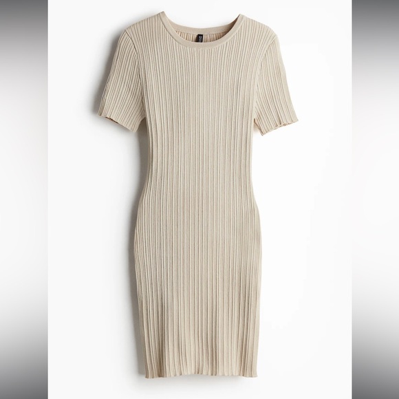 Chic ribbed mini dress. Soft cream color. Perfect for versatile styling.