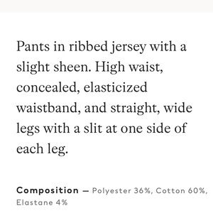 NWOT Elastic waistband ribbed pants with side slits.