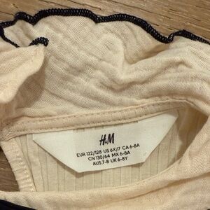 Elegant cream ribbed top by H&M. Features a charming black trim and bow. Perfect for any occasion.