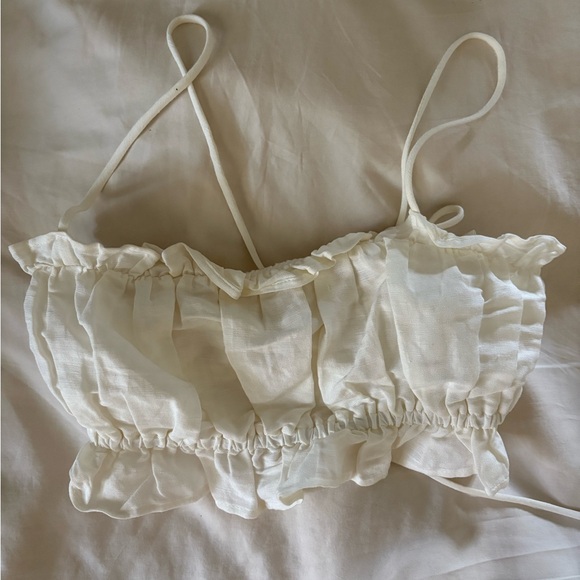 H&M Cream Ruffle Crop Cami Top