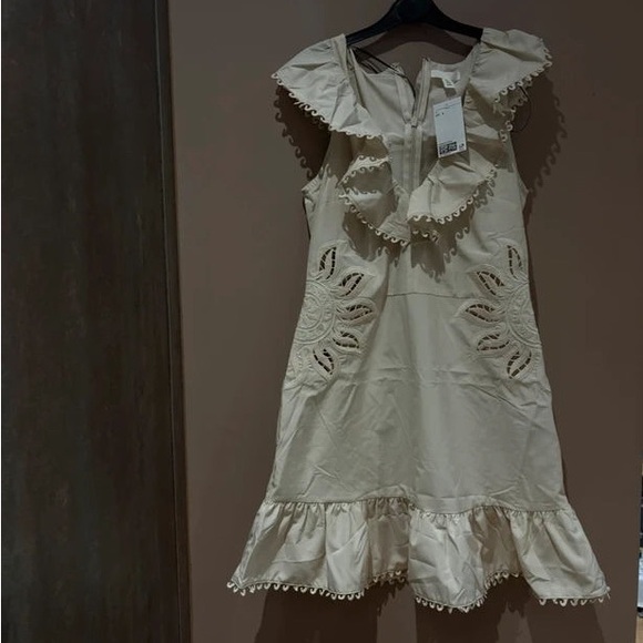 Chic mini dress with ruffle accents. Features delicate cut-out details. Perfect for any occasion.