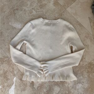 H&M Cream Ruffle-Trimmed Rib-Knit Cardigan