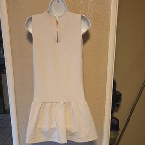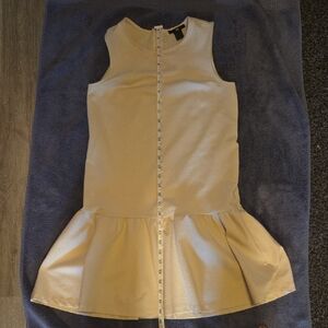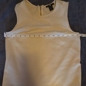 used and in great condition Elegant cream midi dress. Sleeveless design. Flared hem for a chic look.