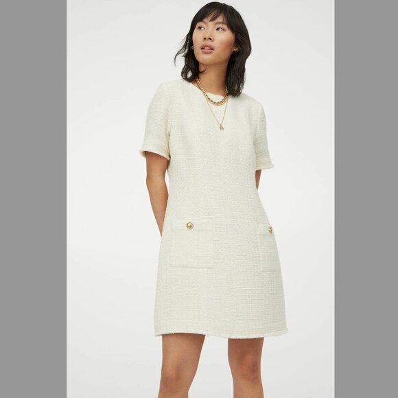 H&M Cream Tweed Boucle Mini Dress, Sz S