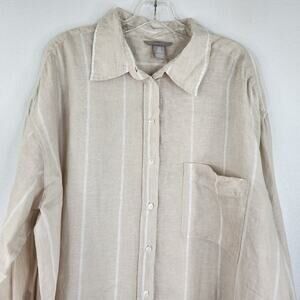 H&M Cream White Stripe Button Down Blouse Size XL 100% Linen Preppy Coastal
