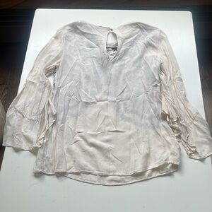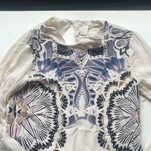 Chic blouse with detailed embroidery. Features cream base with black accents. Ideal for stylish ensembles.