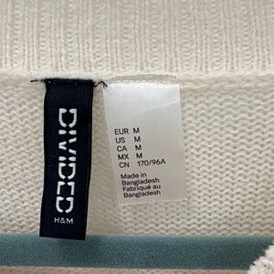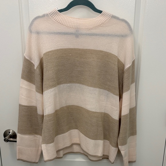 Soft knit sweater in cream with gray accents. Ideal for everyday comfort.