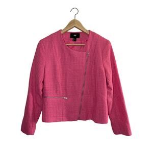 H&M Crop Tweed Asymmetrical Zip Moto Blazer Jacket