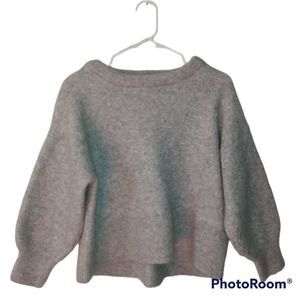 H&M Cropped Oversized Wool Long Sleeve Loose Crew Neck Gray Wool Sweater