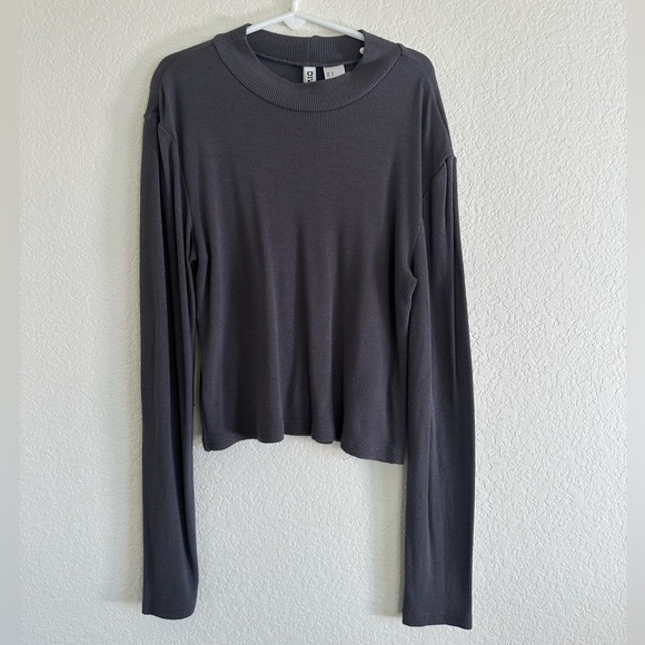 H&M DIVIDED LINE Ribbed long sleeve top Gray top with purple undertone