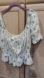 H&M White and Blue Cotton Crop top With ruffles, puffy sleeves, Smocking all around, and smocked sleeves with Lettuce hem, ties at chest